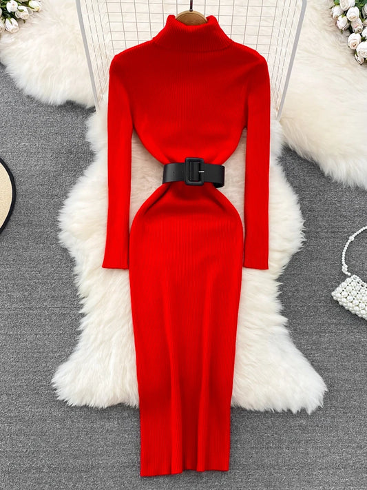 Elegantes Strick-Pullikleid mit Taillengürtel