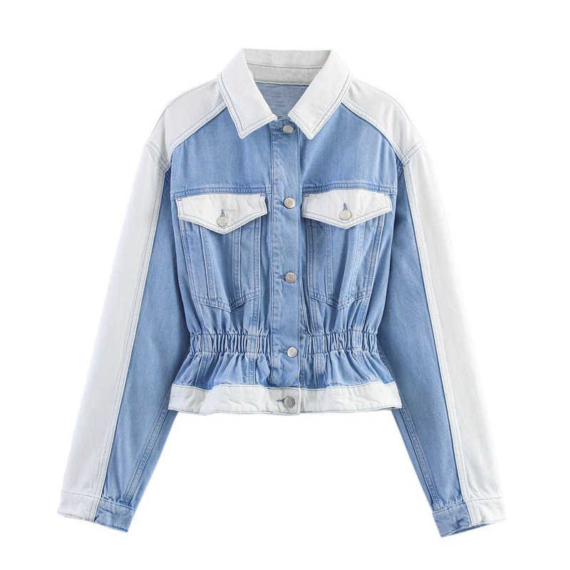 Dieser trendige Zweiteiler aus Jeansjacke und Hose im modernen Colorblock-Stil ist ein echter Hingucker. Vielseitig kombinierbar, bequem zu tragen und mit figurstreckendem Schnitt – ideal für einen stylischen Auftritt im Alltag oder am Abend.
