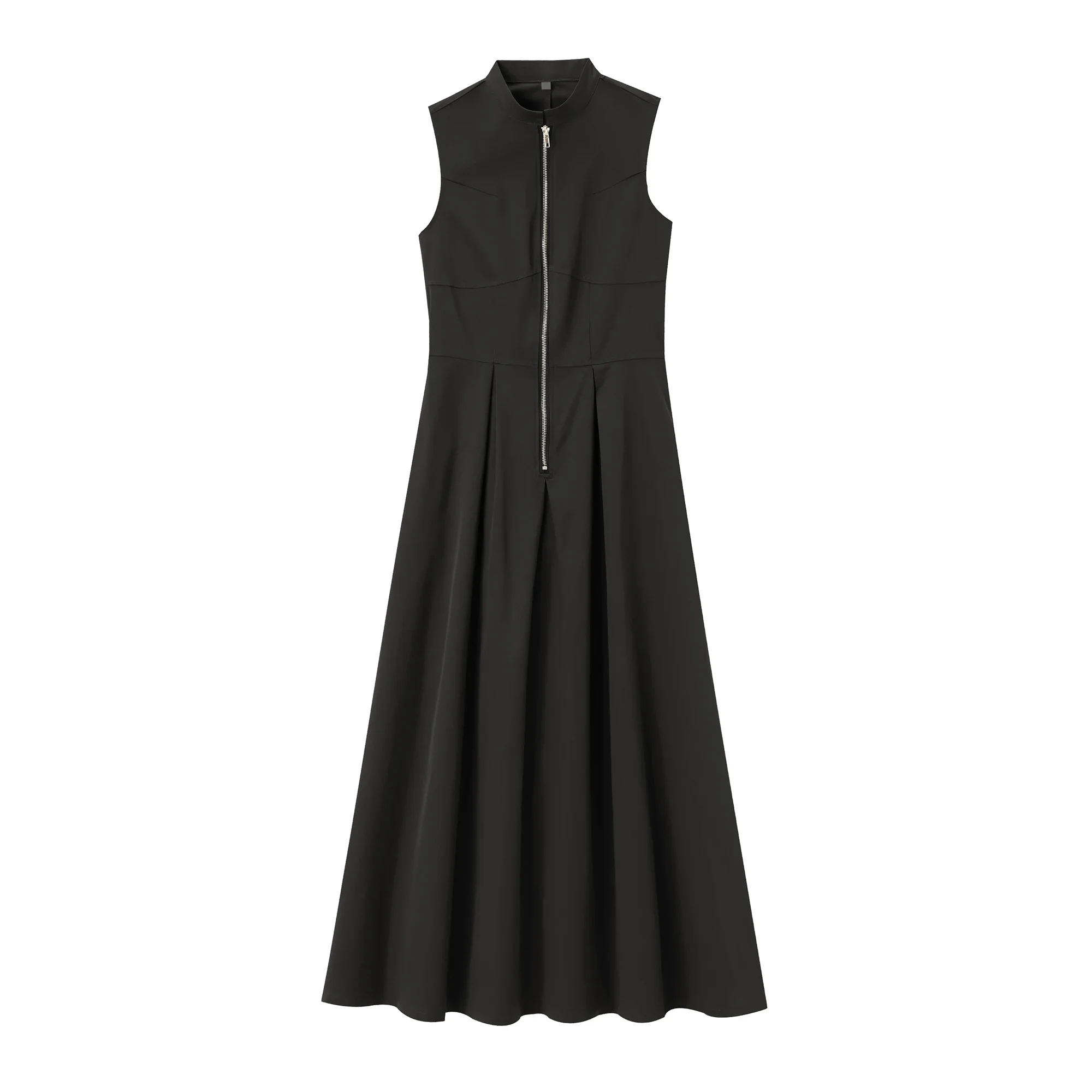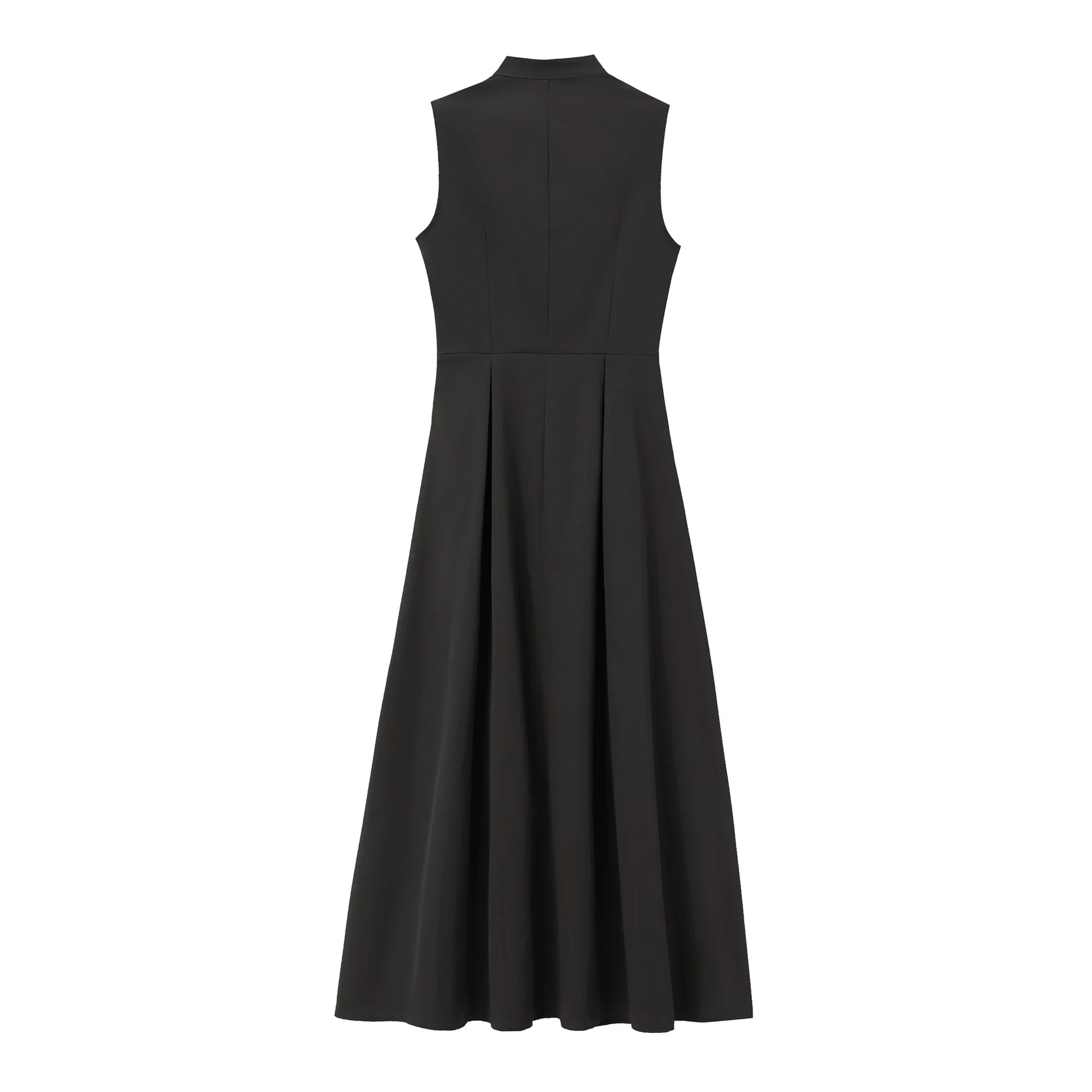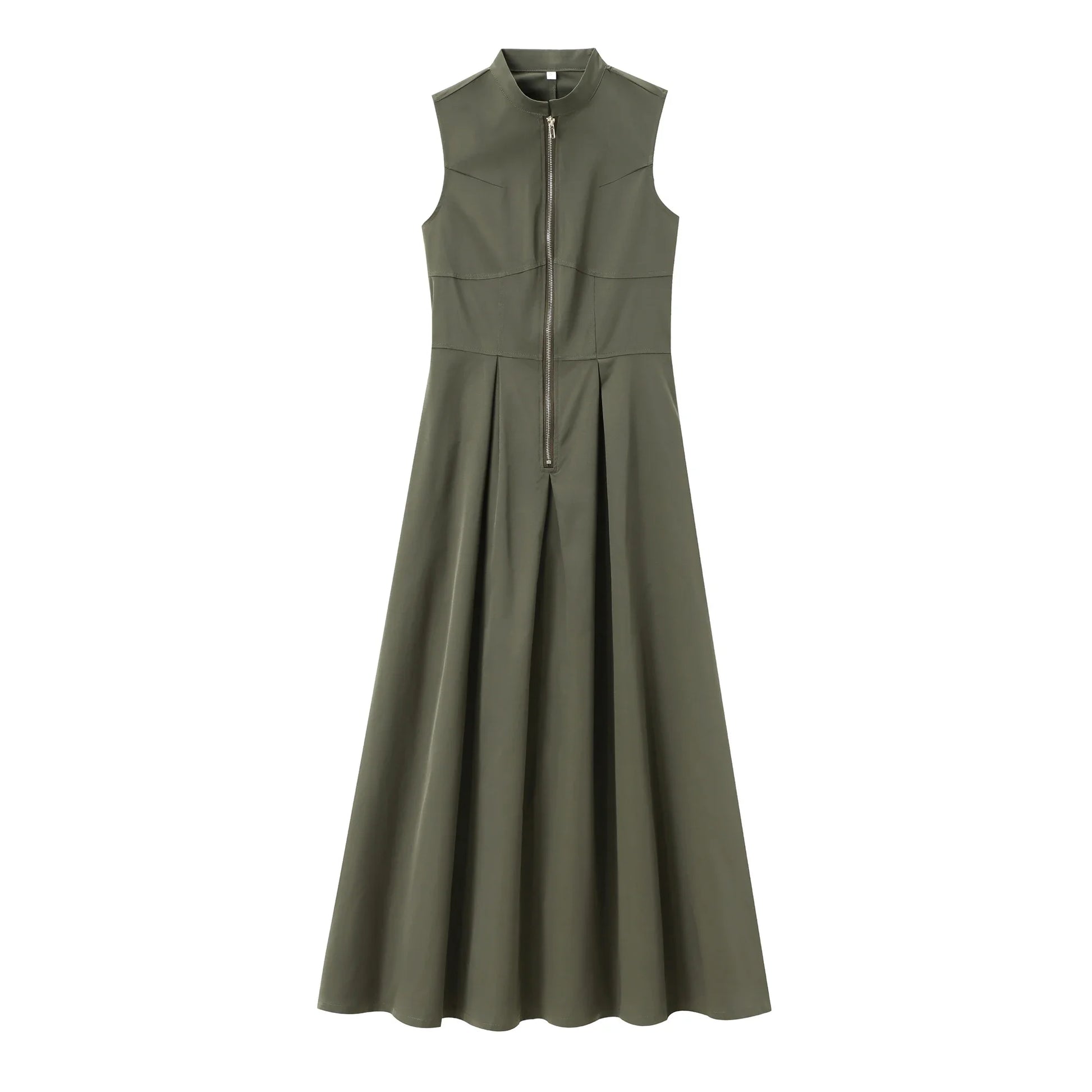 Dieses ärmellose Midikleid ist die perfekte Kombination aus Stil, Komfort und Vielseitigkeit. Der elegante Stehkragen, der durchgehende Reißverschluss und die sanft fallenden Falten machen es zu einem echten Hingucker – ganz gleich, ob du es im Büro, beim Stadtbummel oder zu einem besonderen Anlass trägst.